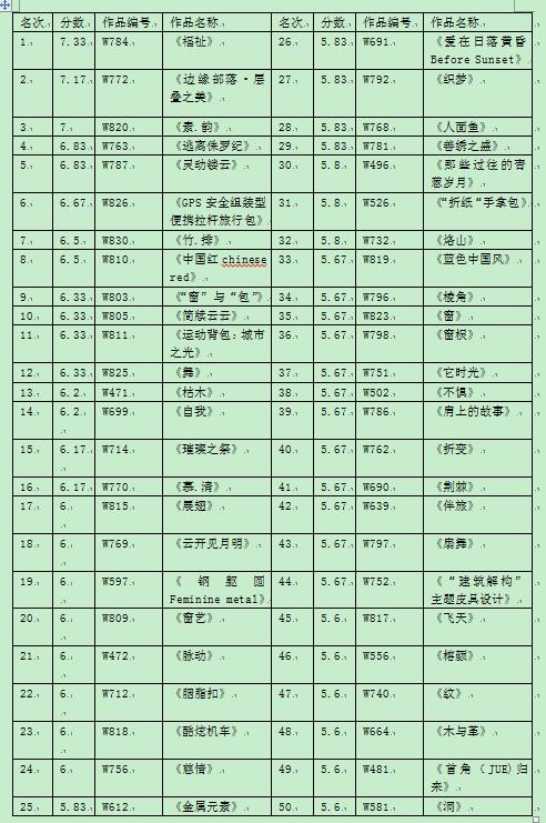 一、50强作品名单公布如下
