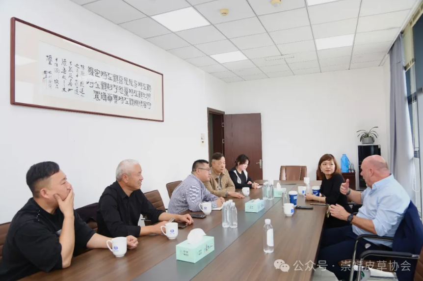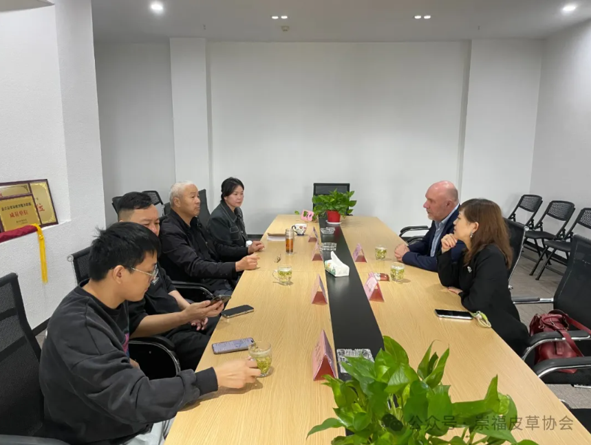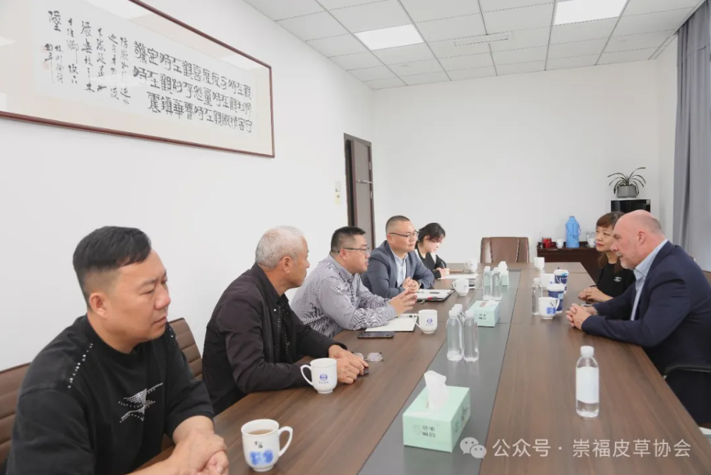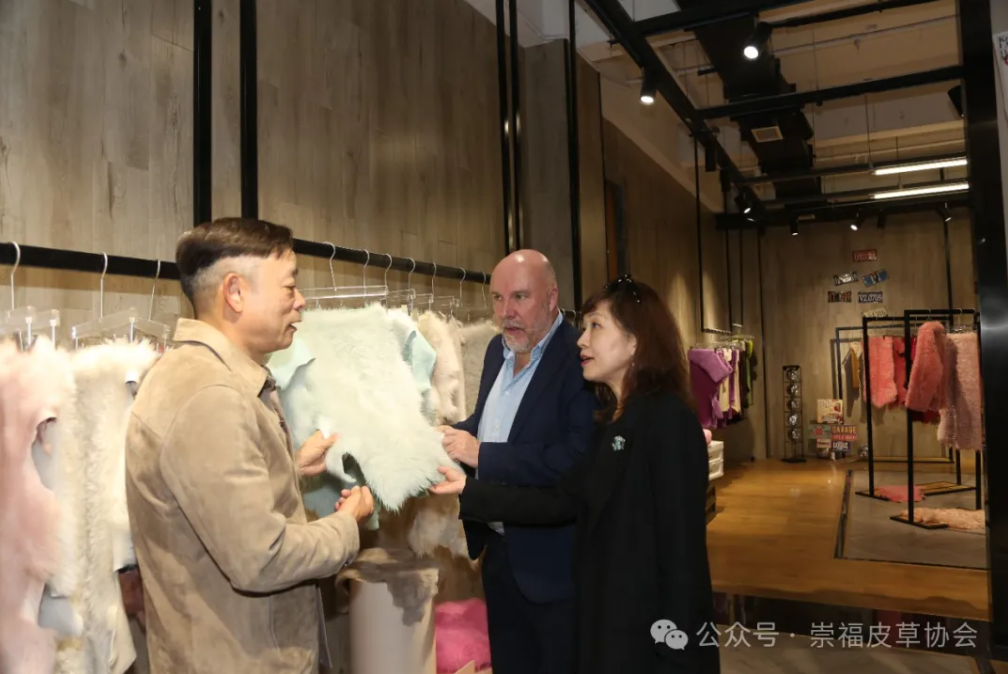 11月13日上午,国际毛皮协会CEO Mark Oaten先生、中国区CEO王晶女士在蜂鸟国际总经理邓拥东的陪同下,走访崇福皮草协会,同协会秘书长姚夏其、电商企业代表北麋服饰总经理劳震旭等人进行了沟通交流。