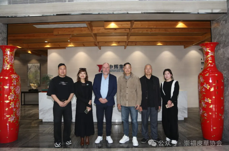 结束和镇政府领导的沟通交流后,Mark先生一行在崇福皮草协会理事长、中辉集团董事长胡建中的邀请和陪同下,参观了浙江中辉裘革科技有限公司。