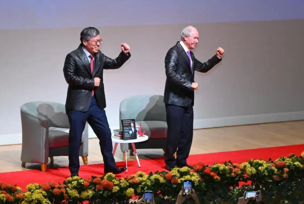 日前,在香港科技大学的荣誉博士学位颁授典礼上,一幕即兴场景让海宁皮衣意外“出圈”。黑石集团创始人、董事会主席、首席执行官苏世民与港科大校董会主席沈向洋教授,在完成一场关于领导力与创业精神的对话后,身着同款黑色皮衣欣然共舞。这段充满感染力的画面迅速在社交平台传播,成为典礼期间备受关注的花絮。