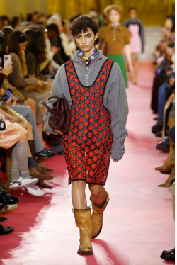 在Miu Miu的秀场上,模特脚上那些沾着虚拟尘土的工装靴,与精致时装形成的张力恰恰折射出当代消费社会的复杂心态——当虚拟与现实边界日益模糊,触及真实的物质性反而成为新的奢侈。这种集体潜意识正在重塑时尚产业的价值观:不是向上攀附,而是向下扎根。正如Miuccia Prada所言,"生活本就是多元的",而时尚终于开始正视这个简单却深刻的日常真理。