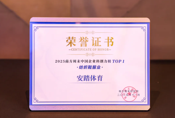 11月28日,由南方周末报社主办的第五届科创大会在上海落下帷幕。会上,安踏集团凭借卓越的科技创新实力,位居2025年南方周末中国企业科创力榜纺织鞋服业首位,获评“2025年度杰出科创企业”。